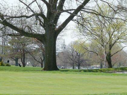 Glancing across the golf course from 86th St. provides a view of the four-sided clock tower of Poly Prep Country Day School, if you know where to look. Poly Prep Country Day School has had its distinctive Georgian campus on 7th Ave. and 92nd St. since 1916. Its four-sided clock tower is a Bay Ridge landmark and can be seen from most points in the Fort Hamilton area. Other than the occasional chicken scratching in a front yard (Bay Ridge still held on to shards of its former rurality when I was a kid) the only chickens or ducks I ever saw outside of a petting zoo were in the Poly Prep grounds on 92nd St. Sadly, the fowl were relocated a few years ago.