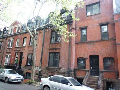 No such threat exists for Henderson Pl., on E. 86th St. between York and East End Aves. Henderson Pl. is its very own Landmark District. The alley, and parts of E. 86th and 87th Sts. and East End Ave., are home to 24 row houses of the eclectic Queen Anne style built in 1883 by the firm of Lamb & Rich (who also built Sagamore Hill, Teddy Roosevelt’s Oyster Bay home) for developer John Henderson that’re dwarfed by the high-rise apartment houses that are more typical of the area. Alfred Lunt and Lynn Fontanne, the husband-and-wife acting couple, lived on Henderson Pl. for years. The houses rented for just $650 in 1883.