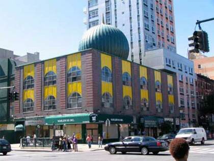 The avenue features some grand apartment buildings. On the southwest corner is the Malcolm Shabazz Mosque No. 7, Sabbath Brown, architect 1965, the year of Malcolm X’s death: he was a preacher at the mosque’s original building. It replaced the old Lenox Casino.