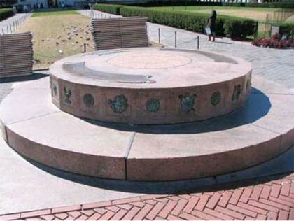 At my Columbia presentation, many of the attendees were unaware that the Sundial, a fixture and meeting place on College Walk for over nine decades, once had a 16-ton polished green granite globe positioned on top of it. It was a gift in 1914 from the Columbia College class of 1885. The sphere began to develop cracks in 1944 and was removed in 1946. For a time Columbia didn’t know its whereabouts, but it turned up in a field in Ann Arbor, Michigan in 2001; efforts to reclaim it have so far been unsuccessful.