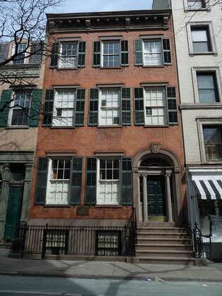 #203 Prince St. is a three-story brick residence combining Federal and Greek Revival styling and has been preserved, or more likely restored, to look the way it did when it was completed in 1834 for leather inspector John Haff. Originally constructed with two stories, a third was added in 1888. In the colonial period, this land was owned by vice president and murderer Aaron Burr, whose estate in what’s now Soho and the West Village was called Richmond Hill; there are also regions of the same name in Queens and Staten Island (where Burr breathed his last in 1836).